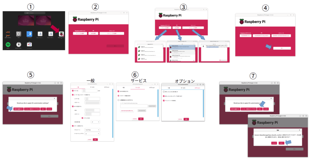 - Raspberry Piデバイス、OS、ストレージの各欄から項目を選択。