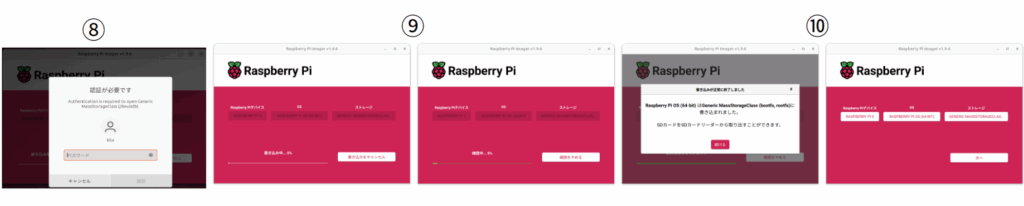 - SDカードへの書き込みが開始され、書き込み終了後確認が行われます。