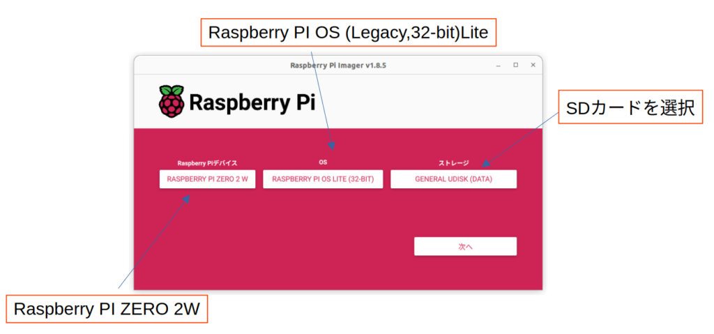 - Raspberry PIデバイス ー> Raspberry PI ZERO 2W