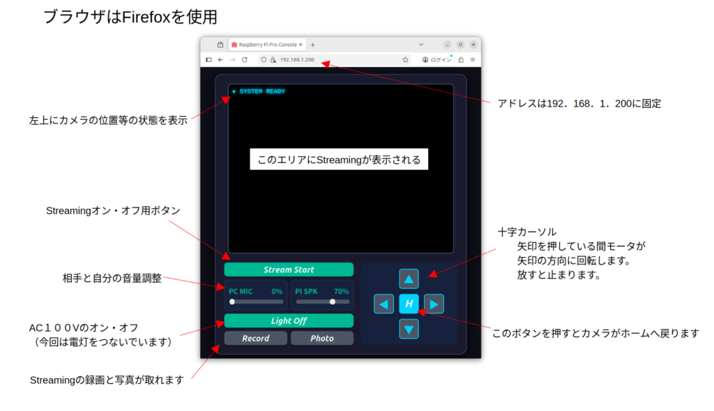 他のブラウザでは動かない可能性が有ります。 - スマホ、PC等から簡単にアクセス出来る用IPアドレスを固定しています。